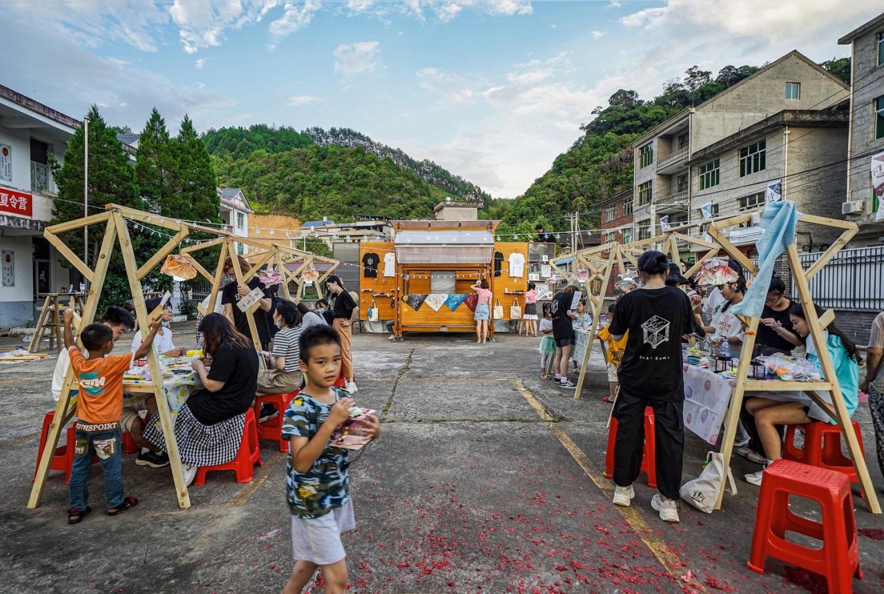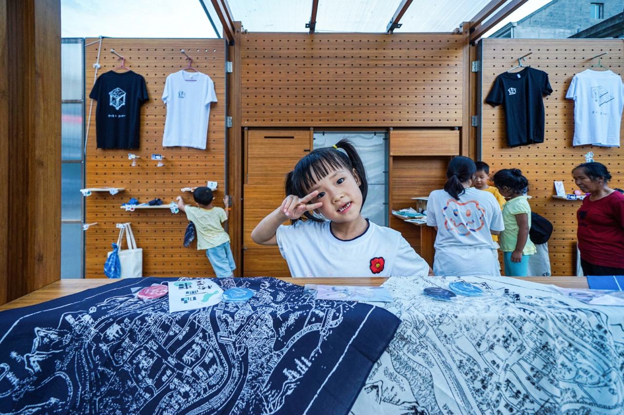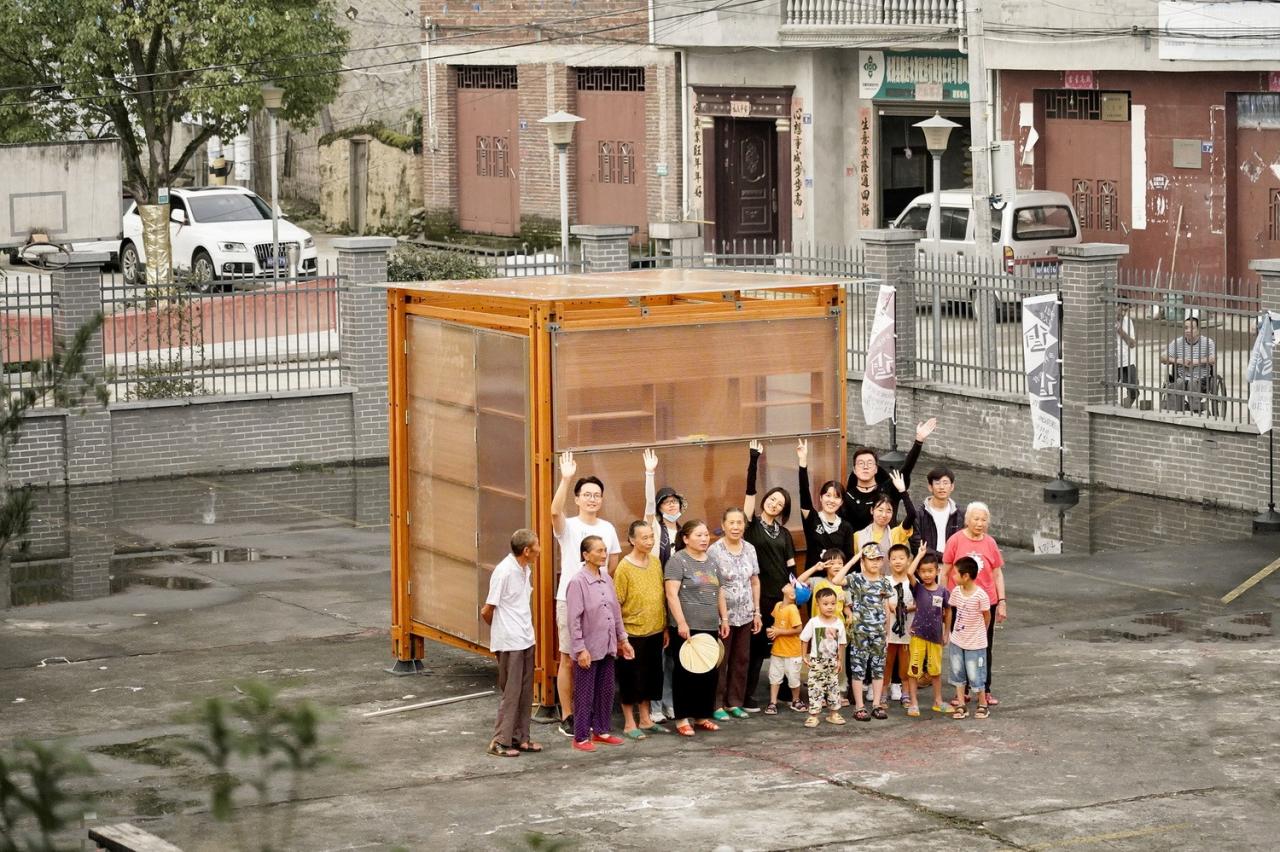本次的工作舱建于松溪县项溪村一所废弃小学内,供村民休憩、孩童玩耍之余,还需作为艺术文化的传播窗口,承办松溪版画相关的庙会活动,涉及到展陈、售卖、工作、观影等多种功能,因此最终产品由一面“售卖墙”、一面“体验墙”和两面“展示墙”构成。这是建成的第一座工作舱,此次它的主要任务是在松溪县项溪村的一座废弃小学内扮演一个承载版画艺术与文创活动的容器,下次、下下次,它可能出现在其它村子里,激起不一样的浪花。