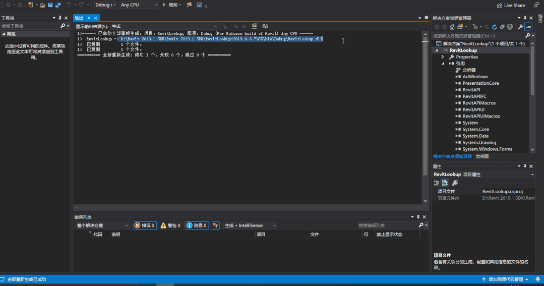 a.打开RevitLookup.sln 重新引用一下文件可能需要引用一下,最后生成RevitLookup.dll,并复制路径。