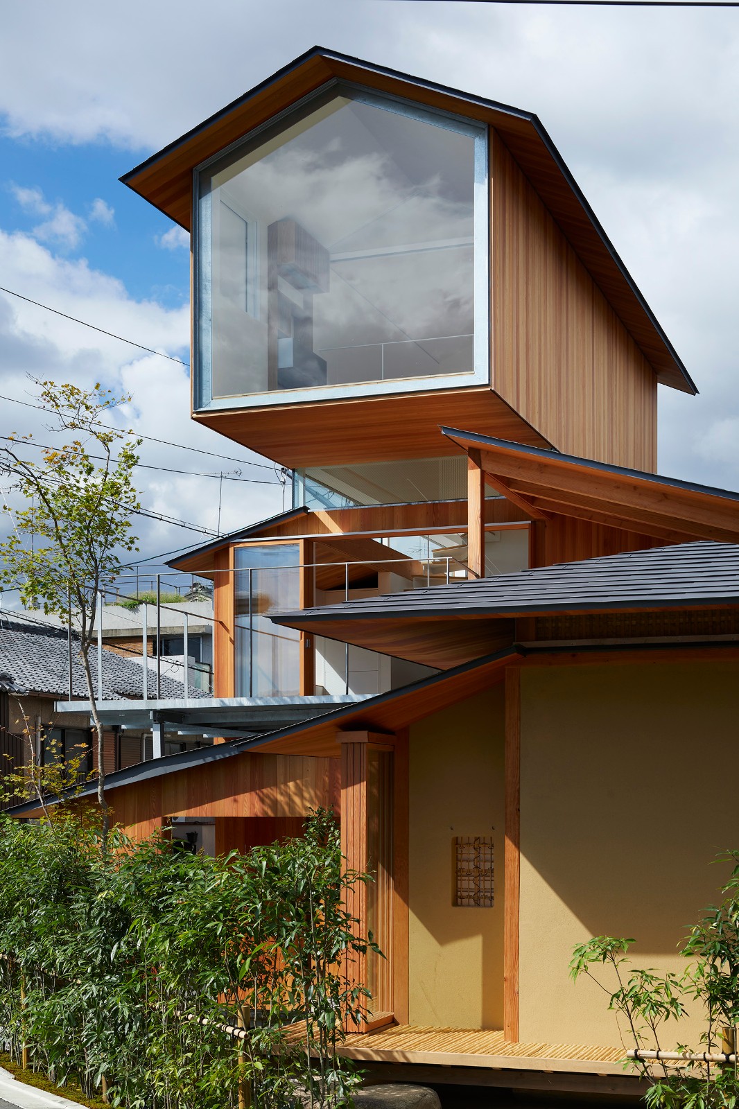 项目位于日本京都的下鸭,地处鸭川西侧,向东可望见比睿山。基地周边是由传统联排别墅和被围墙和树篱围绕的宽敞豪宅组成的混合环境;而近年的高效土地使用需求还使该地区出现了重建的三层建筑。由此,项目前提旨在应对高水平的土地利用需求和更新之中、具有悠久历史的景观环境。