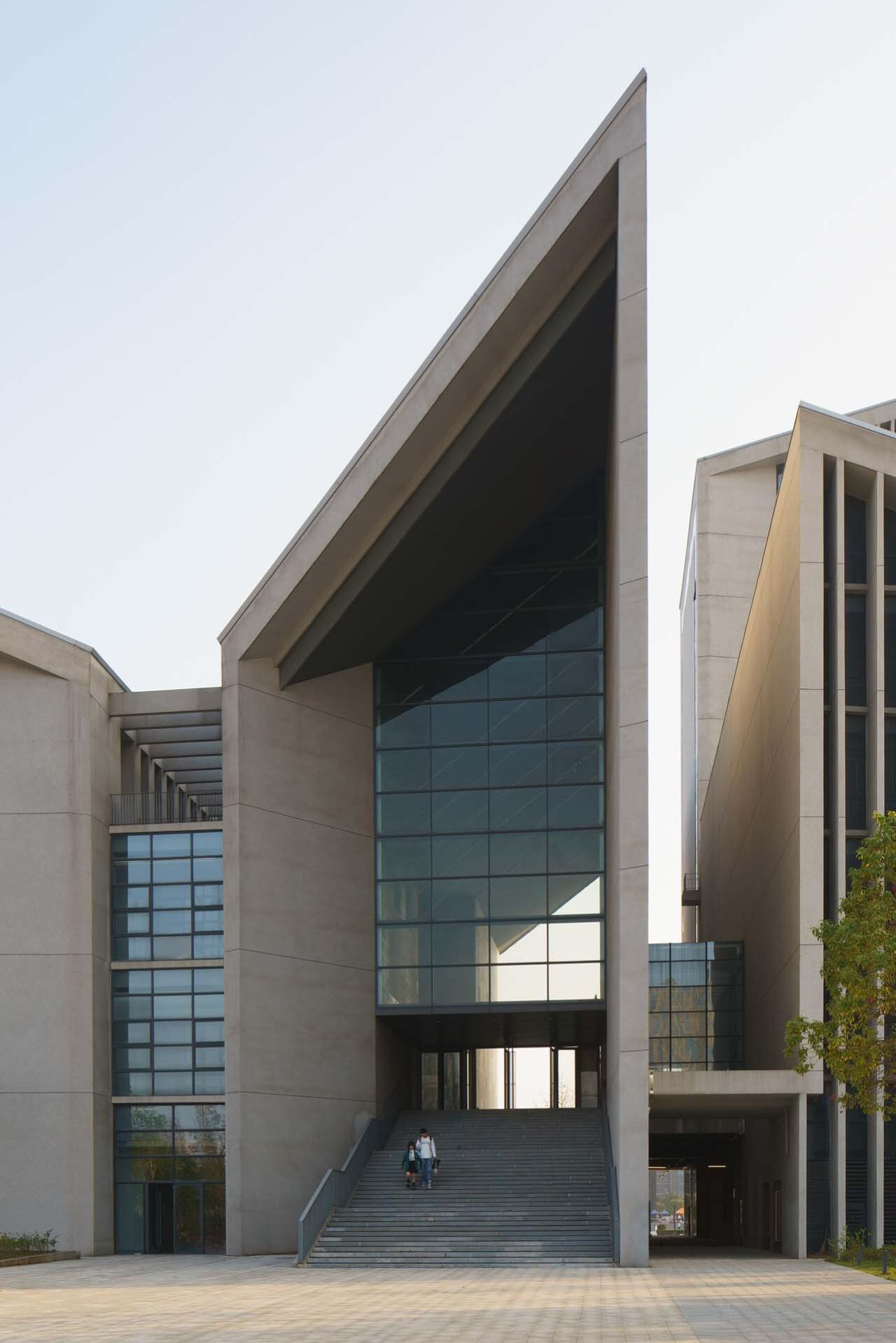 概况图书信息综合楼总建筑面积31266平方米,是包含图书馆、行政楼、风雨操场、网络教室、餐厅等多功能的校园综合体。基地位于校园核心区域,处在校园中心景观轴线之上,南侧为校园中心景观湖,北侧为山体公园。