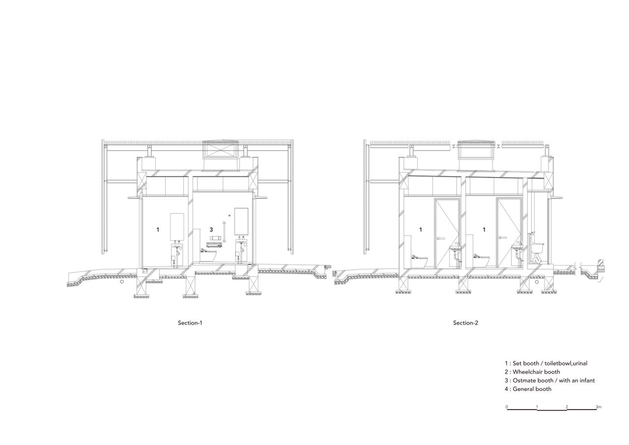 “纯白厕所”的设计通过将其所有组件整合为白色来描绘出厕所应有的干净整洁。包含四个独立厕位的方形建筑由白色铝制百叶窗制成,带来轻盈和通风的感观。这种设计通过适当的可见度来促进洗手间内外的安全性,同时确保厕位内使用者的隐私。