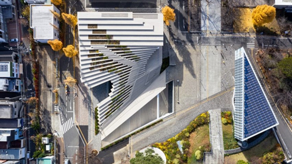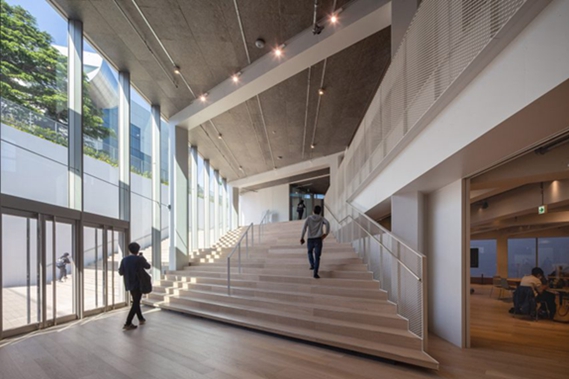 这座名为久生-立花浩子广场(Hisao & Hiroko Taki Plaza,)的建筑部分位于地下,旨在模仿日本大学的地形或“流入校园”的河流三角洲。隈研吾及其同事设计的大楼旨在支持学生互动,包括共同学习、研讨会和支持服务的空间。