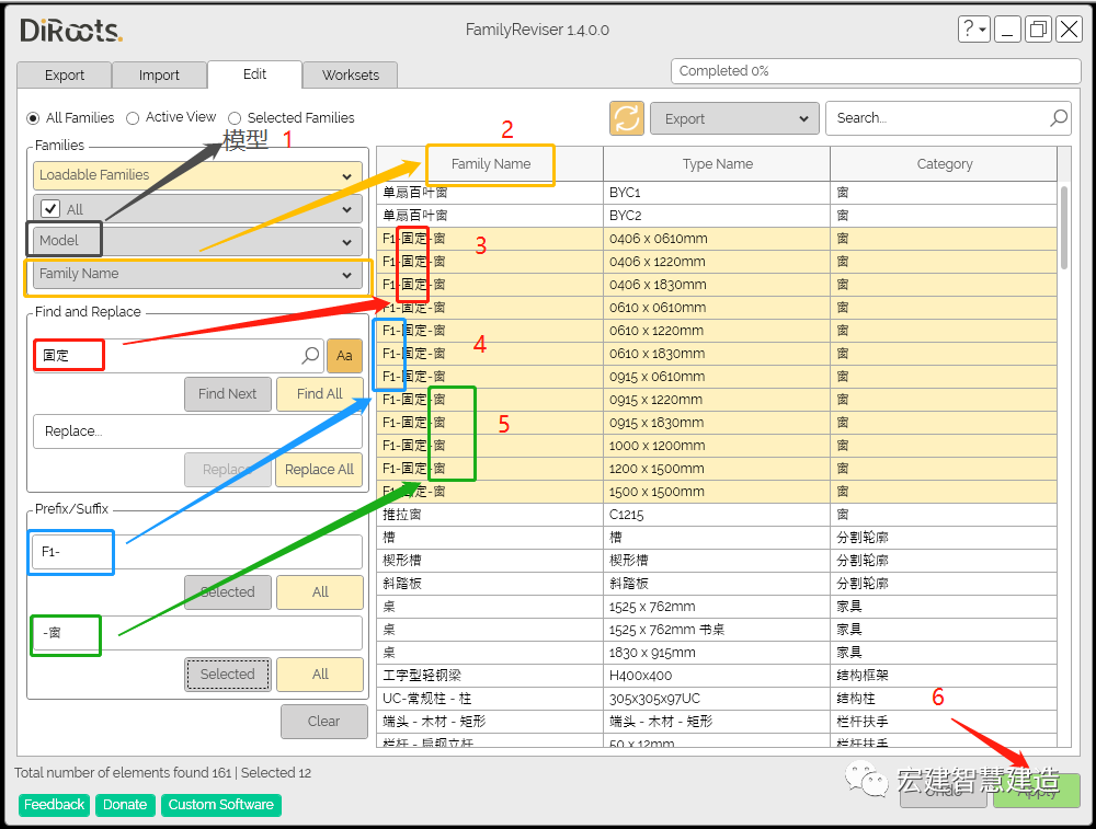 FamilyReviser 编辑 就比导出导入功能强大得多了,不单单可以批量修改族名称和类型名称,还能在族名称前后缀快速添加修改需要的内容。