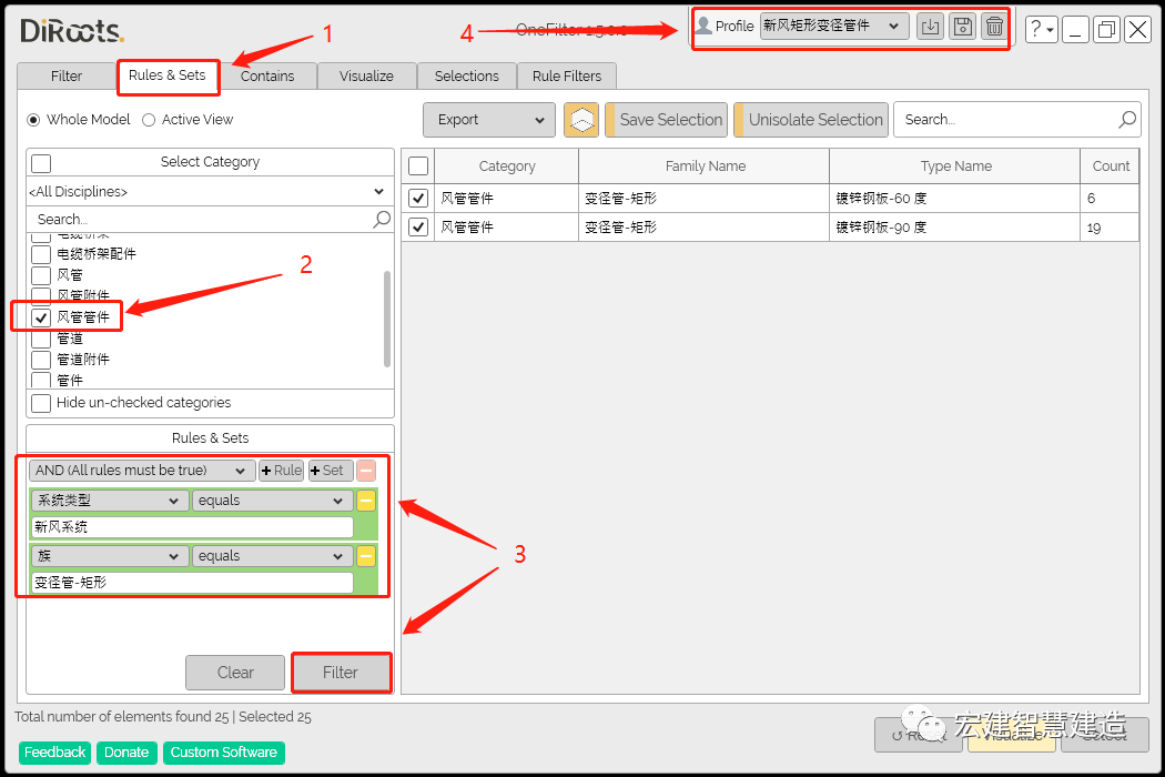 3.设置筛选规则(我只要筛选出新风系统变径管-矩形的管件)