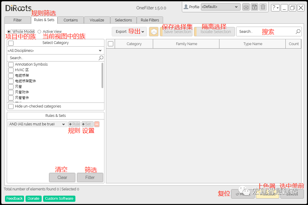 常用Revit 的小伙伴都知道,当文件的系统类型一多,想单纯过滤出一个系统类型是一件挺麻烦的事情。OneFilters 筛选器就帮你做快速筛选分类这么一件事。