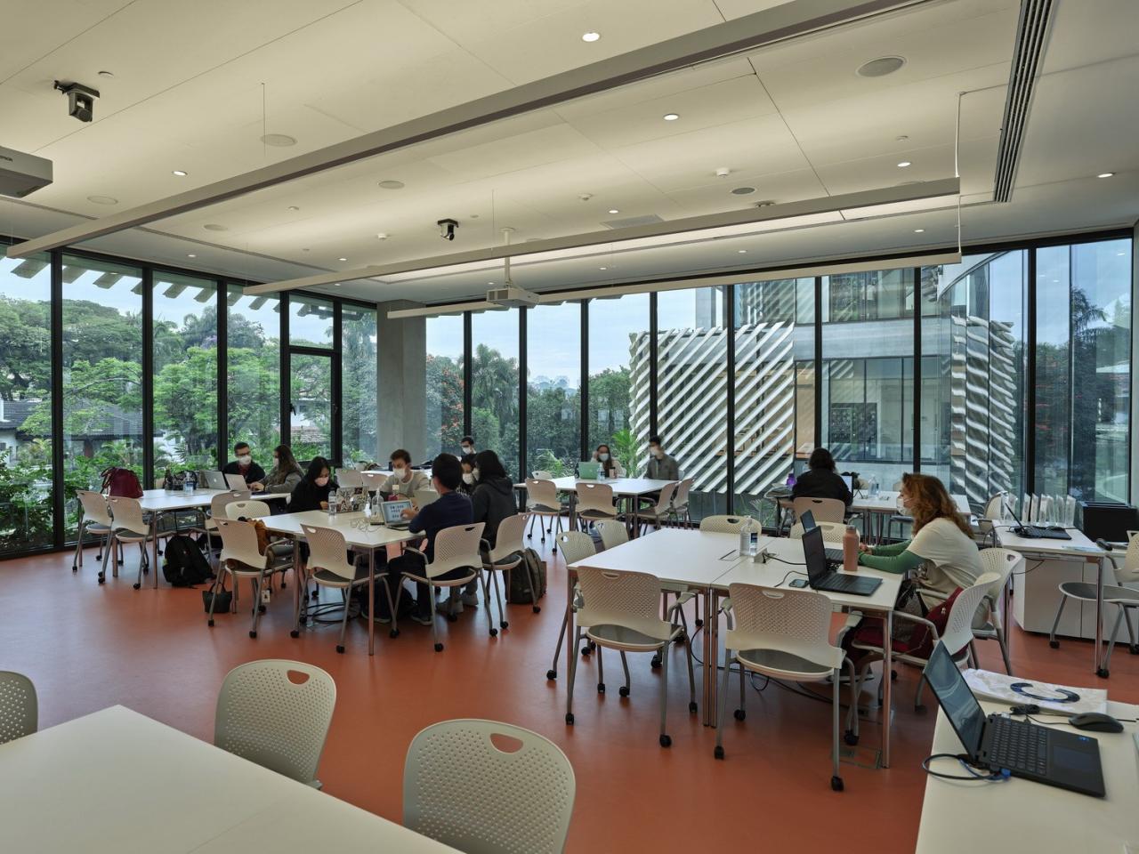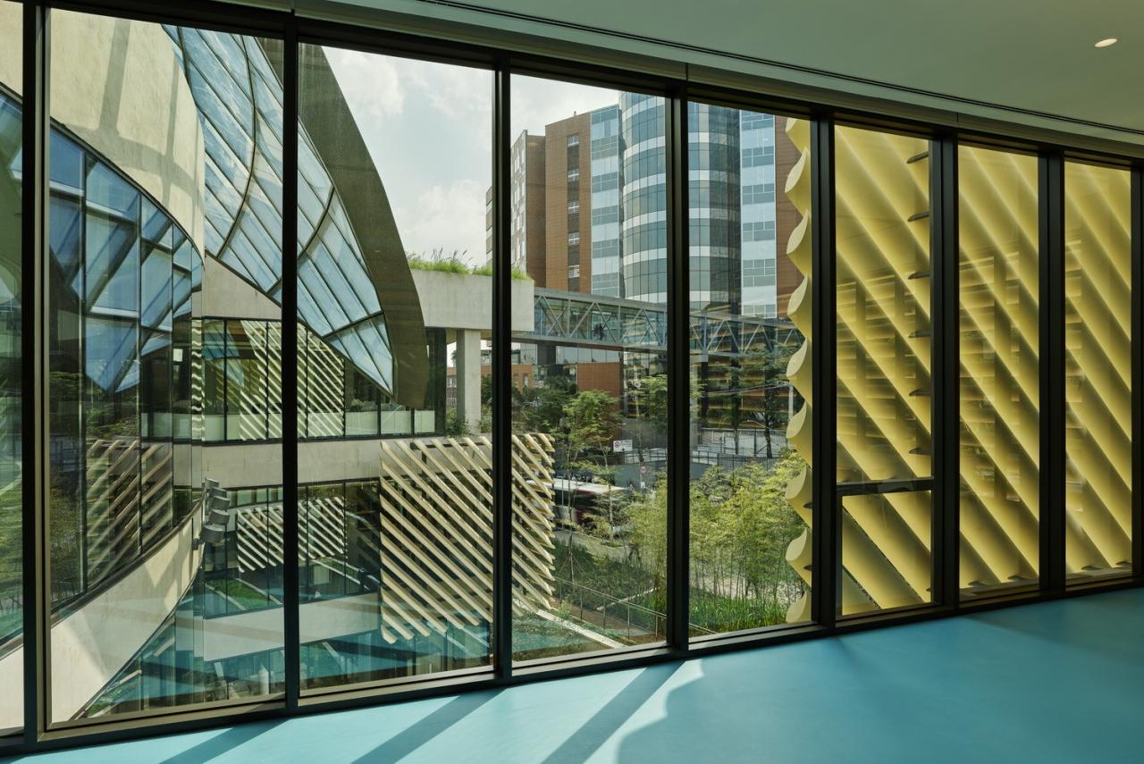该中心包括40间支持高端技术的教室,可通过调整家具将教室灵活划分为多个操作区域,为30至60名学生提供小组式的学习空间。此外中心还包括一座400席的多功能礼堂、多间用于解剖学和形态学研究的学术实验室,以及一系列配备先进仿真设施的模拟检查室、诊疗室和手术室。这些设施可供2,000名学生开展医护共同学习的混合课程。