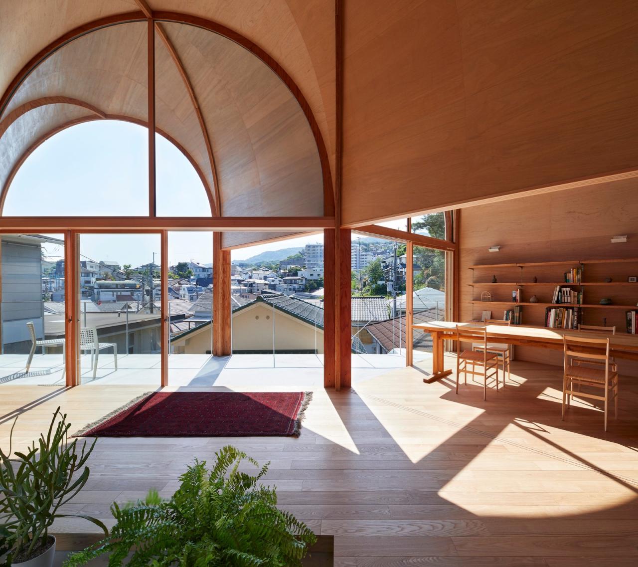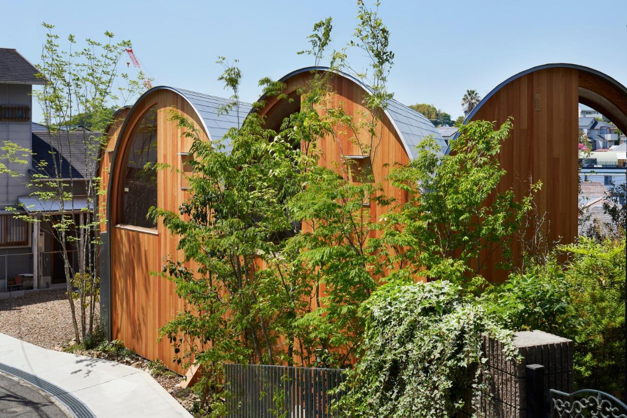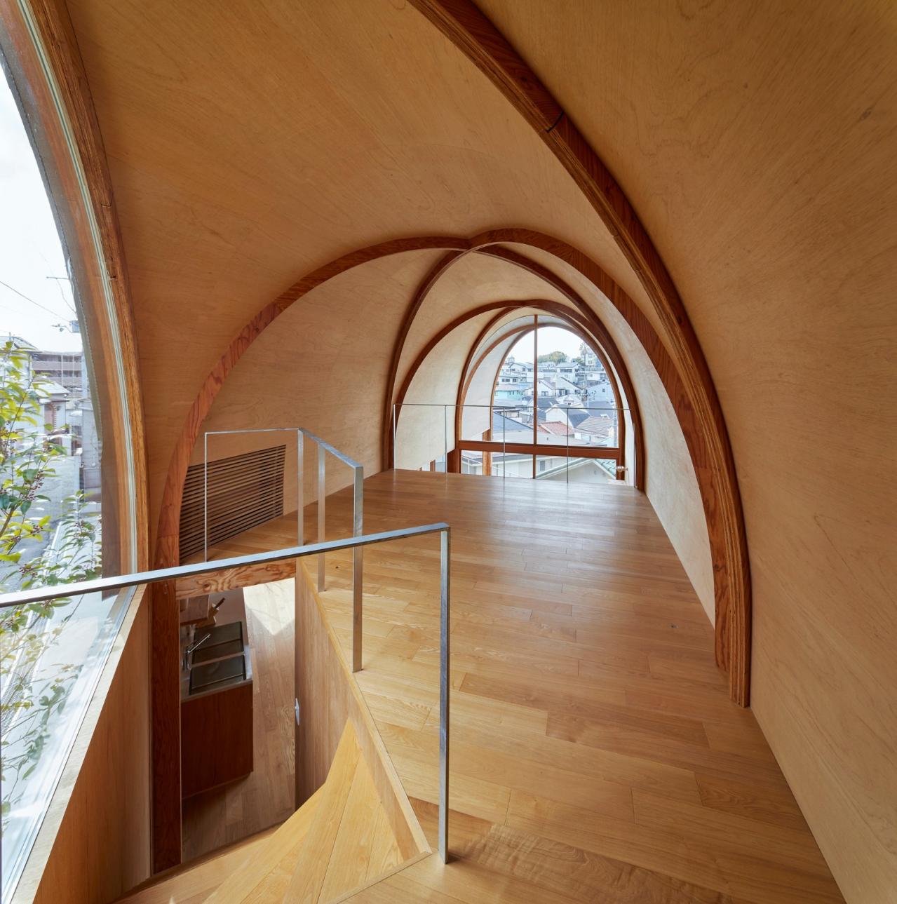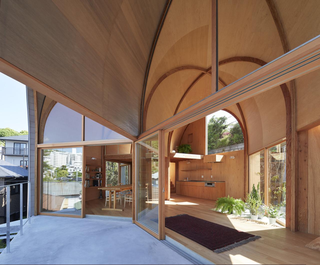 当建筑师进行场地道路查看时,他们发现仅有一条约 2 米宽的狭窄道路可以通往场地。这条道路蜿蜒曲折,不适合用于运输建筑材料。因此,建筑师首先考虑了一种可以手动运输和组装的建造方法:建筑以“拱”作为可拆分的基本模块,以此通过组合一个个小模块以构建大跨度的空间。处在因日本易地震而盛行的木构建筑文化中,建筑师也希望通过甲阳园之家的设计以探索木制模块组装是否可以替代或转换为砖石架构。
