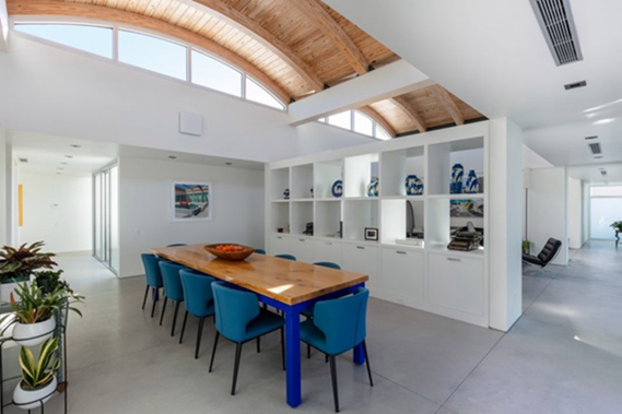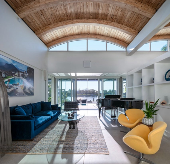 其余的卧室位于这所房子的对面,面向街道。两间儿童卧室共用一个远离客厅的公共游戏区,而客房的入口更靠近门厅,以获得更多隐私。该住宅的大部分白色饰面反映了佛罗里达州以海滩为导向的生活方式。塞伯特工作室提供了色彩鲜艳的家具,而暴露的木质天花板拱顶为整体色调增添了一些温暖。