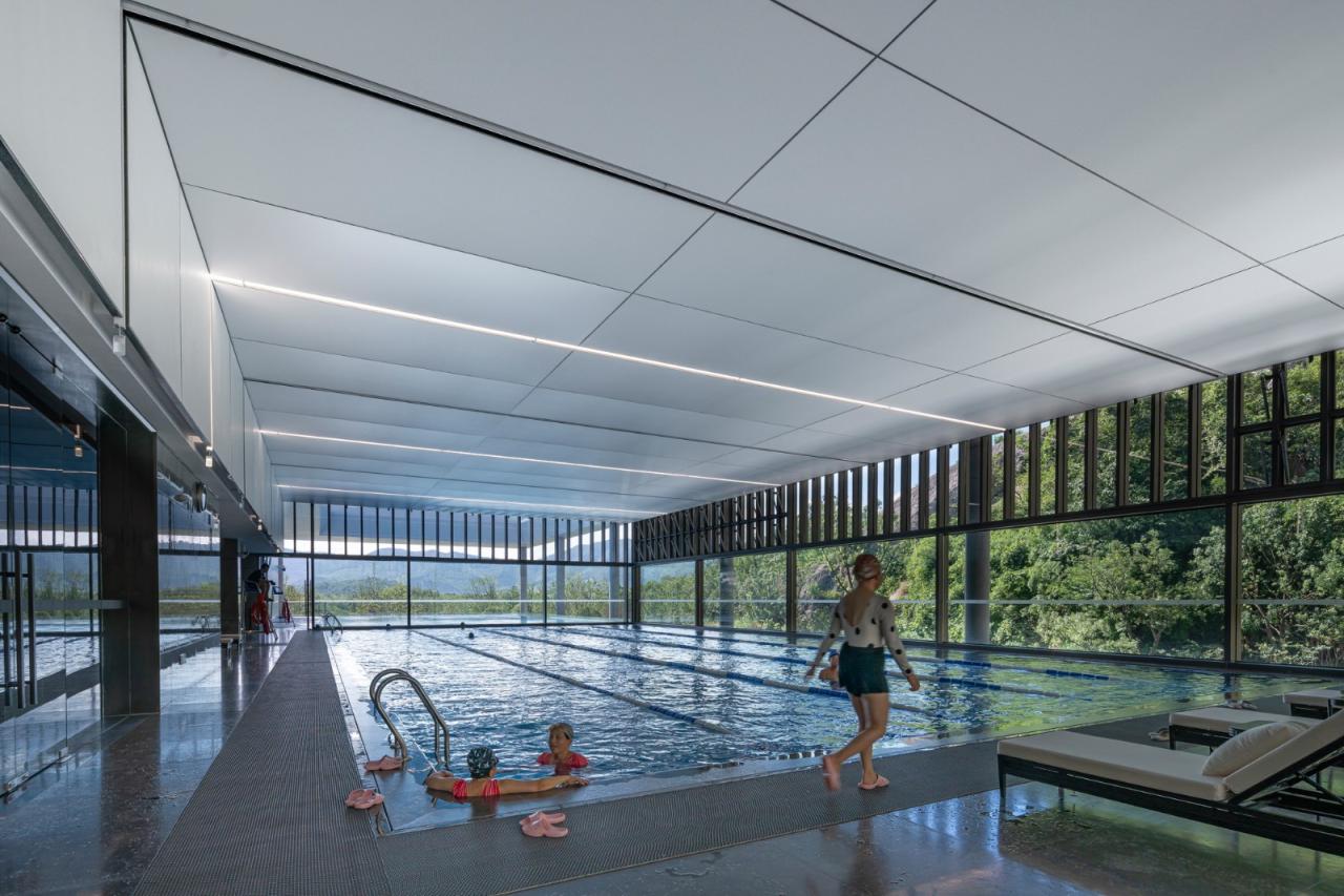 游泳池之外,体育中心还内设健身房、高尔夫球练习室、乒乓球室,室外设有篮球场、网球场、极限运动区等。多元的运动功能,让体育馆成为片区的活力中心,吸引居民及游客来此享受自然风景中的运动体验。