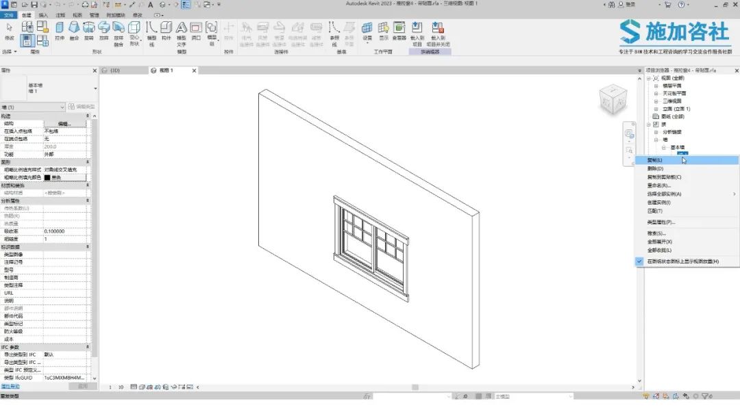 在项目浏览器当中双击族,双击墙,打开基本墙。