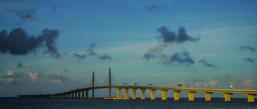 港珠澳大桥于2009年12月开工建设,2018年10月全面通车,桥隧全长55千米,其中主桥29.6千米、香港口岸至珠澳口岸41.6千米,项目总投资额1269亿元,是世界上里程最长、沉管隧道最长、寿命最长、钢结构最大、施工难度最大、技术含量最高、科学专利和投资金额最多的跨海大桥。