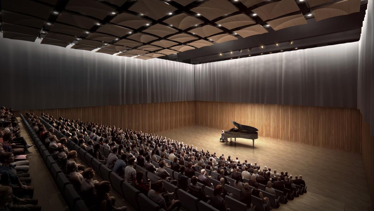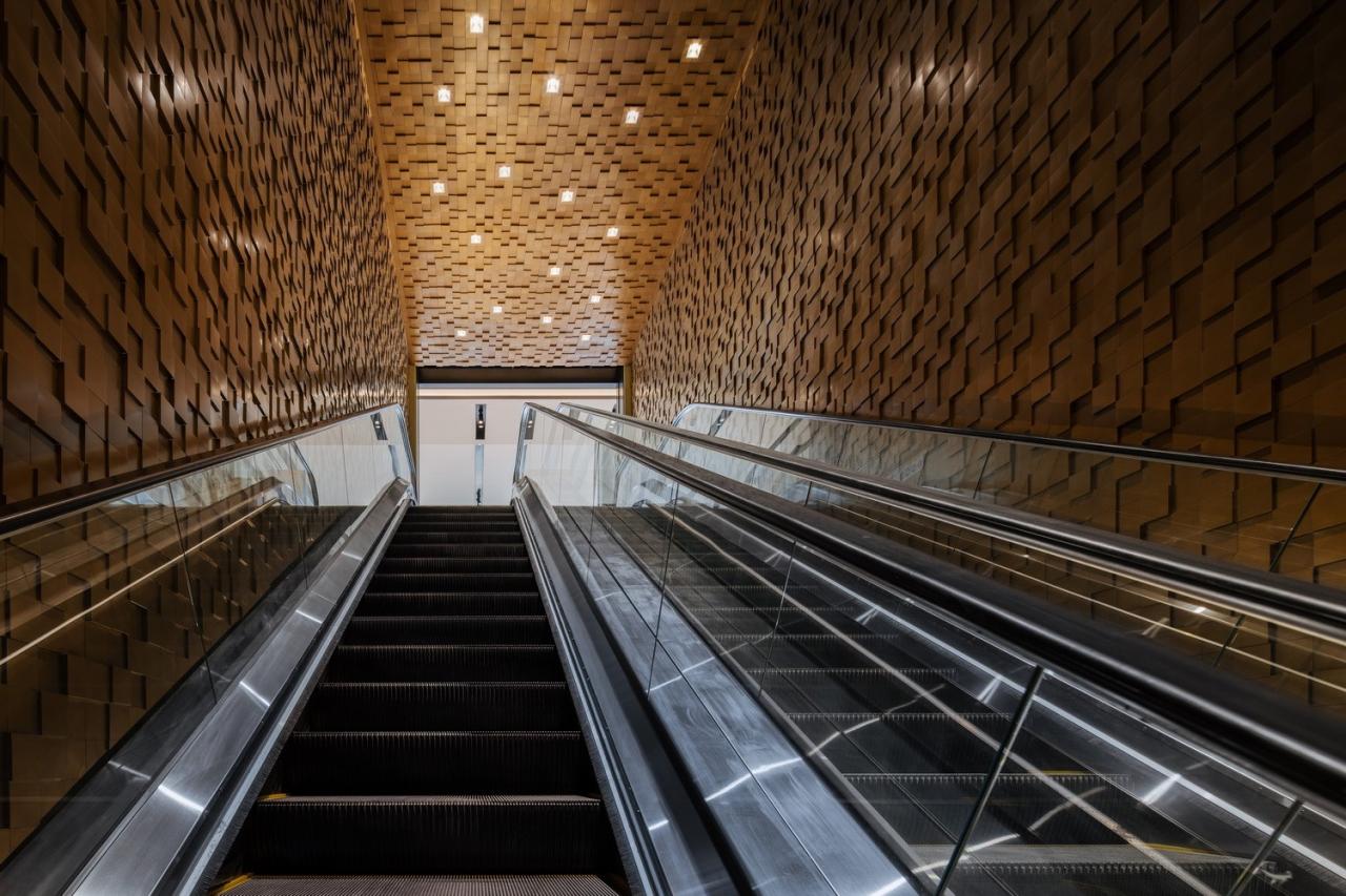 精品社区商业空间部分,采用首层部分架空的设计手法,形成欢迎式的社交广场吸引人流;醒目的大台阶作为主入口,将人流直接输送至上层;精品潮流零售、高奢旗舰店、潮玩快闪、顶尖车辆品牌展陈中心、时代云幕剧场,文化展览空间等不同功能在立面上以精准尺寸的缝隙相接,隔而不断让城市界面更加丰富,生动演绎出广州骑楼的传统间隙空间特征。