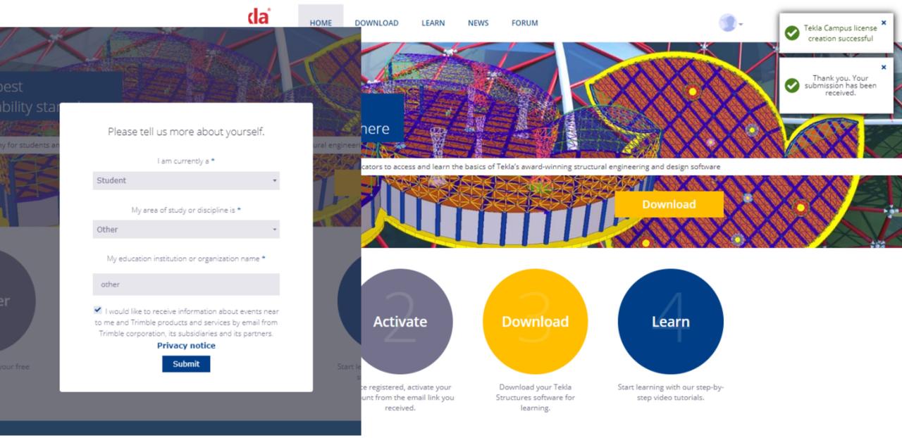只需要7步就可以完成Tekla Campus试用版注册,还没有注册的朋友跟我们一起操作吧