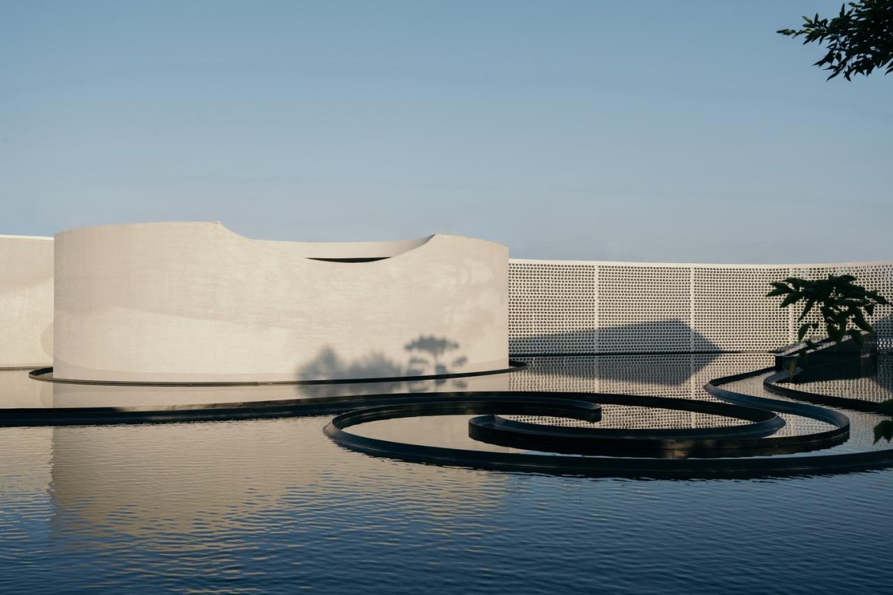 独白美术馆是徐徐展开的手卷。从光线破角而泻的入口小剧场开始,进入艺术长廊,沿着忽明忽暗的敞廊,静谧的水院慢慢展现出来,经过高高的彩色斑斓的瑜伽室,来到明亮高洁宽阔的美术馆(展览和画室)。然后光线变暗,道路变窄,几乎会错过藏在墙壁后的茶室。尽端若有光,那是在云雾中的舞蹈教室。走出建筑,继续沿着花墙,在斑驳的影子中,涉水而行。水中自有暗流潺潺贯穿在中央婉转潜过建筑,想是奔海而去。又逢小剧场,放眼深看去,六株水上树,微风中低声摇头独白。所有风景和声音以及思考都缓缓展开成画。