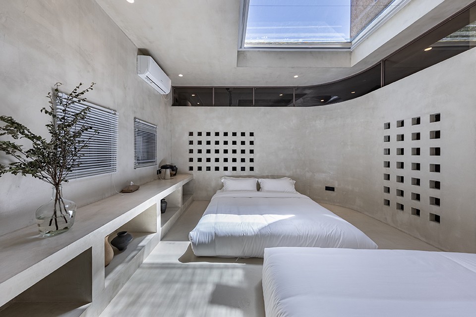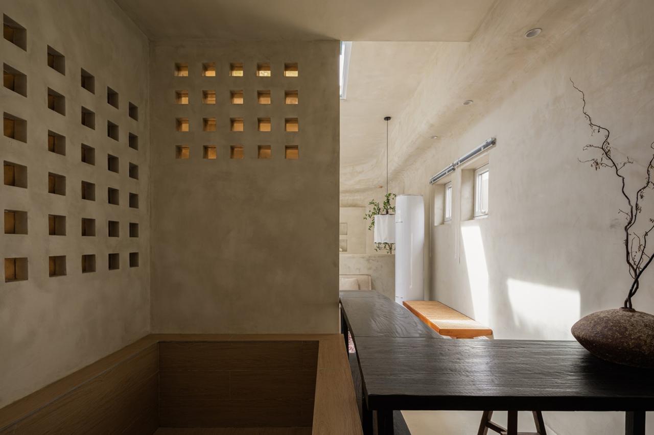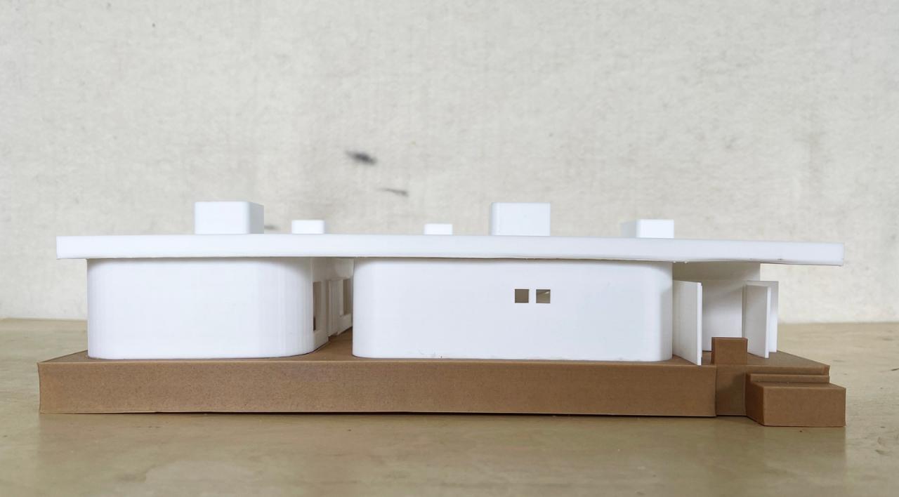 我们将原有四合院肌理保留,然后用一个大的板式屋顶将四个房子连接到一起,同时将每个房子的屋檐拉长,人们可以坐在屋檐下感受四季变化。