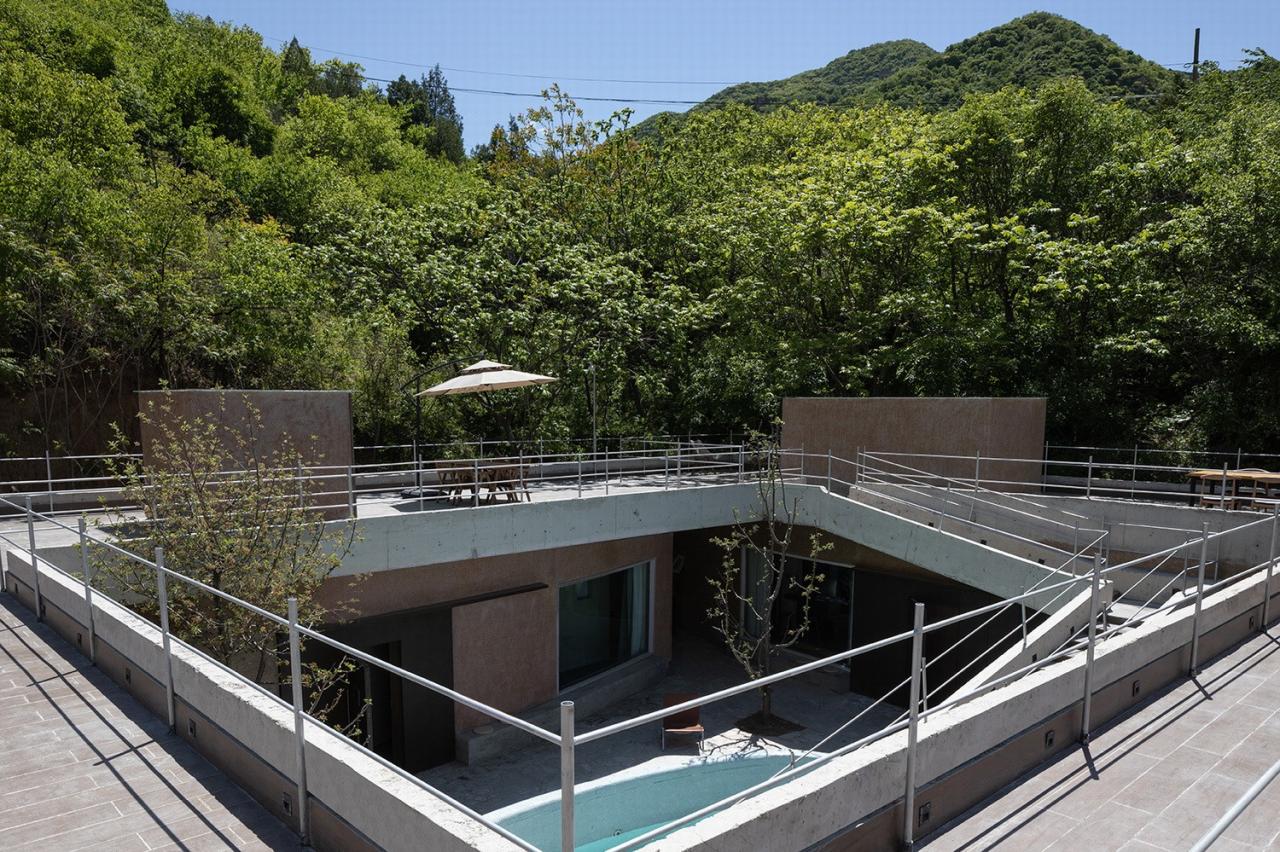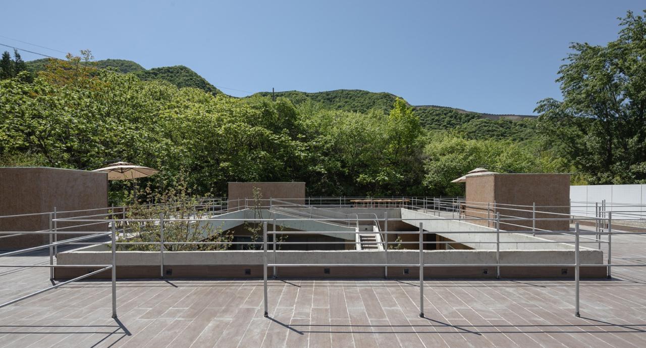 屋顶东面和南面与山腰间的野树林相融,人们在此可游可闲!