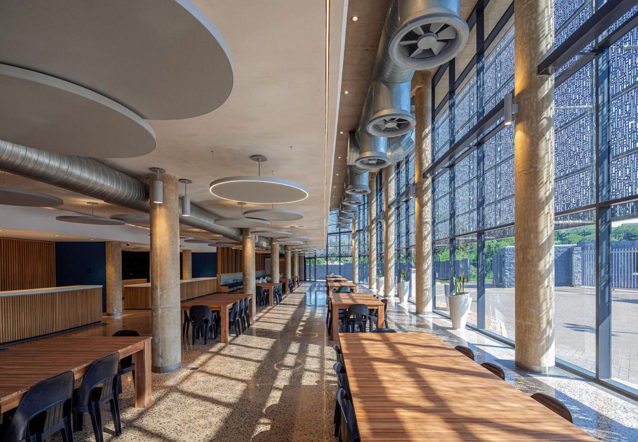 与许多在富裕社区中茁壮成长的教会不同,南非德班基督教中心意在服务于一个没有特权的社区环境。预算和财务方面的严重限制、并一直影响着项目进度,甚至使建设过程停工数月,这也导致了众多机智解决方案的涌现。强大的领导力、充满活力的社区环境与在个体信仰中发现的意义相结合,给项目和建筑师都提供了支撑与服务。由此,建筑师采用了最原始的材料、饰面和服务方式,甚至将其剥离到它们的裸露状态,以创造一种完全诚实和真切的品质。教堂内部与一些火灾后保留元素的结合,尤其佐证了建筑师的这一设计要义。