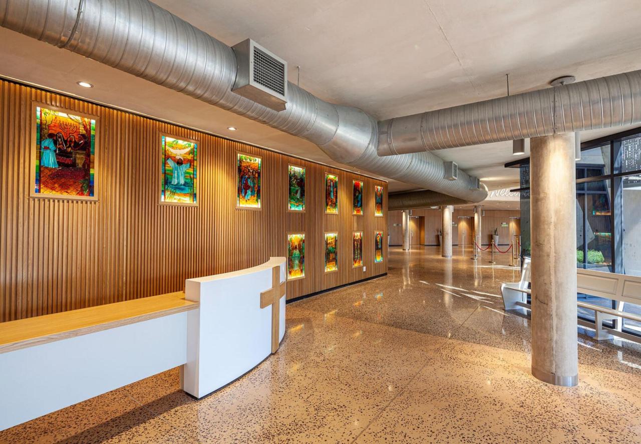 这座全新的教堂是从一场毁灭性大火的灰烬之中升起的建筑,在基址语境下塑造了一个强大的形象外观,足以容纳3500名会众;其礼堂、小教堂和教学空间共同合并成为了一个教堂建筑群。
