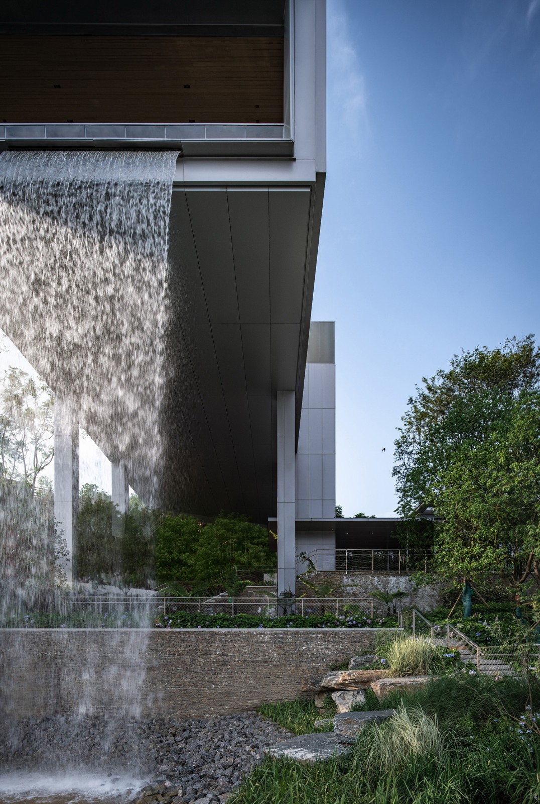建筑以一种极简的面貌,置于上下公园联系的通道上,与山体融为一体,跳脱于环境,又有极强的对话性,达到建筑师所希望营造的一种隐奢的有机的场所精神,以及对自然的谦卑之心。