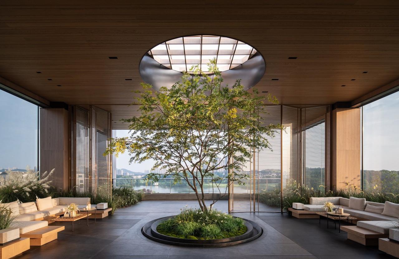 模糊边界的室内空间是令人愉悦的。置入自然庭院,引入自然光线,引导自然视野,让心安静下来,关注每一个材料的真实性,关注每一个空间的层次性。感知场地,静听内心。
