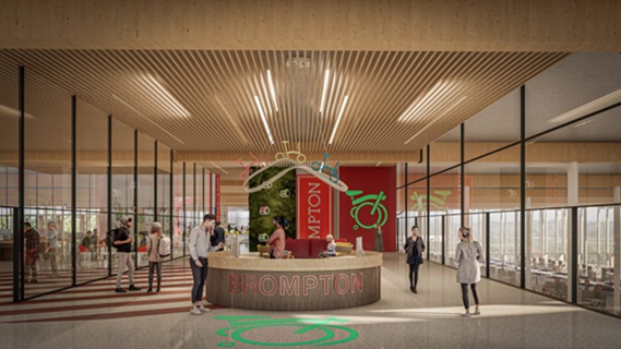 该建筑将包括一座布朗普顿博物馆(Brompton Museum)、活动空间、一个屋顶食堂和露台,以及可容纳1500多名员工的办公室和生产设施。布朗普顿公司目前在伦敦西部的格林福德(Greenford)生产其首创的折叠自行车。该公司承诺至少在2030年之前保持该设施的开放。布朗普顿公司希望,迁往阿什福德的举动将使该品牌能够保持与首都的联系,但由于欧洲之星铁路线的存在,该品牌也能轻松抵达欧洲。布朗普顿公司首席执行官威尔-巴特勒-亚当斯(Will Butler Adams)说:“我们面临气候变化,加上世界上大多数人口居住在城市身心健康状况不佳,我们需要适应新的环境。”他说:“疾病大流行后,全球意识到,我们需要改变我们在城市中的生活方式,以生活在城市中的人们为中心设计城市。”