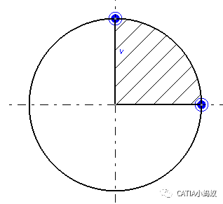 2.选择圆中心线竖线上侧,横线右侧,这样焊缝会出现在第一象限。