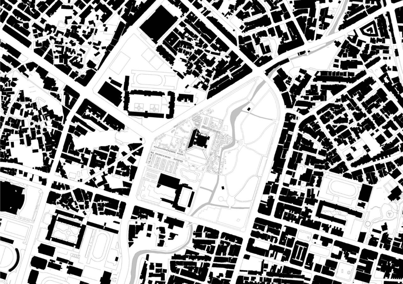 因此在图书馆的改造中,我们在现存建筑的西立面构想了一个全新的、透明的门廊。从城市尺度而言,这使得建筑的朝向旋转了90度并面向城市开放,从而重新与市民的日常生活相联系;从建筑尺度而言,门廊如同一个巨大的窗户,将建筑的室内与室外相联系,既对外向城市展示了图书馆内部正在发生的活动,又向内引入了图书馆周围环境的景观,为室内氛围增添了一抹生机。