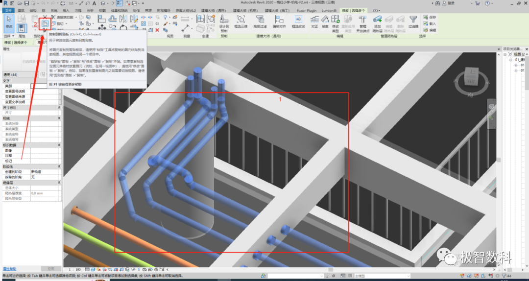 在项目前期或后期,我们会通过拆模分层来进行工作或进行模型的交付,revit中,我们在拆模的过程中可能会发生某些构件拆错层的问题,可以通过下面这种方式进行不同项目文件中构件的复制。
