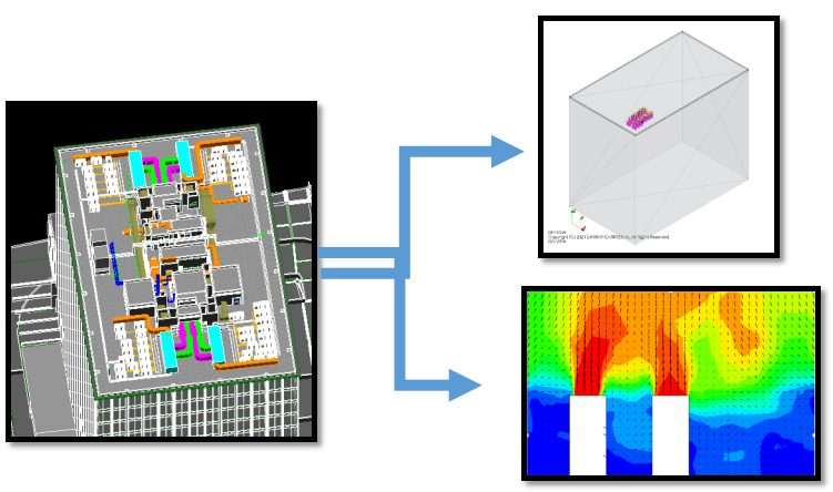 利用BIM深化屋面模型后,对于屋面气流组织进行分析,确定了屋面方案的可行性和气流最不利点的位置。