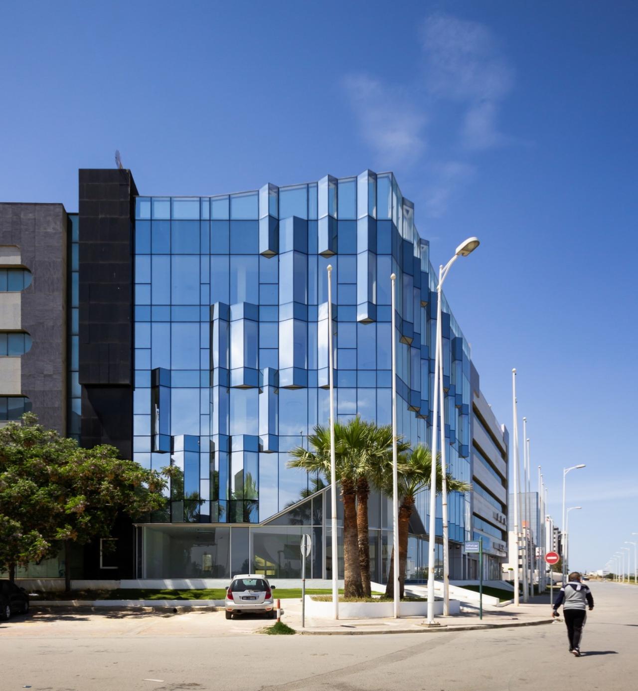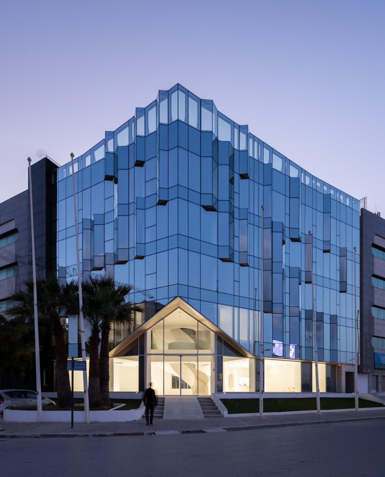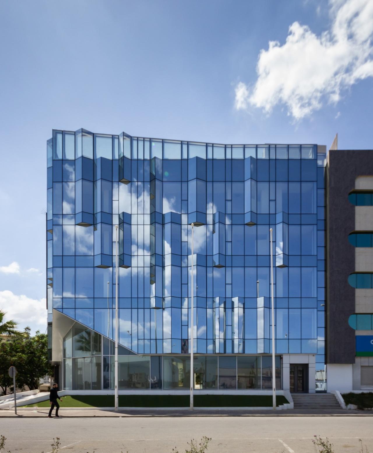 一座标志着突尼斯城市扩张的标志性建筑,也是突尼斯最早的商业区之一,正从上到下焕然一新。ETRATON 在三十年后重新设计了这个结构,保留了它的一些旧的独特特征,并恢复了该建筑作为与首都的一条主干道相邻的城市地标的作用。ETRATON 的底层是一个双层的汽车展厅,并突出了老楼梯的雕塑感。其他所有楼层都是办公空间。该建筑的转角入口被给予了特别的关注,模仿舞台幕布的尖角掀起,创造了一个光与景的奇观。