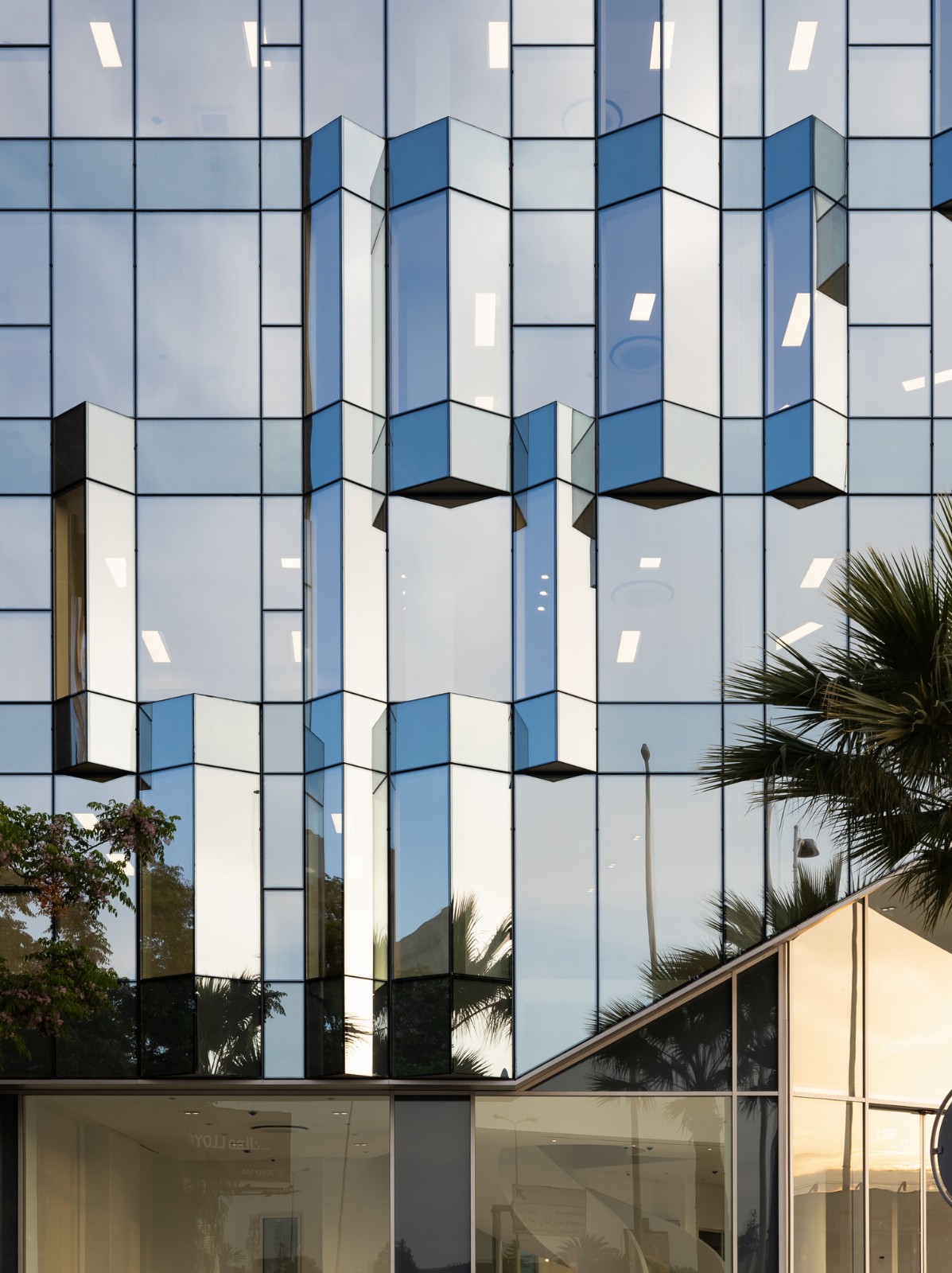 在日照减少的最初征兆下,只要照明开启,这种与自然的融合和外墙的不透明性就会逐渐消失。建筑揭示了它的深度,它的皮肤变成了多孔的、透明的和光亮的。因为采用开放的楼层设计,所以确保了城市景观的全景开放性和工作空间的质量,能与现代生活相协调,并且其中融入了自然元素,如此一来活动是自由的。这些楼层的广阔空间为用户提供了广泛的空间组织方案,以适应他们公司的动态和文化。