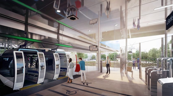 沿线总共将修建33座Y形和V形塔架,以支撑架空缆车线路。每个客舱可容纳10名乘客,该系统预计在最繁忙的时候每小时可运送约1600人。之所以选择缆车系统,是因为郊区的丘陵地形限制了地铁和火车线路的建设。