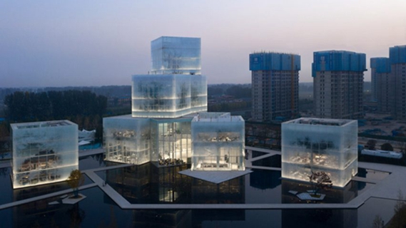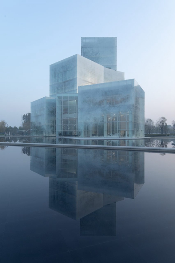 这座位于中国河南新乡的文化中心(Xinxiang Cultural Tourism Centre)由九块磨砂玻璃“冰块”堆在水池屋上,由法国马蒂厄-福斯特工作室(Mathieu Forest Architect)和理想工作室(Zone of Utopia)设计。