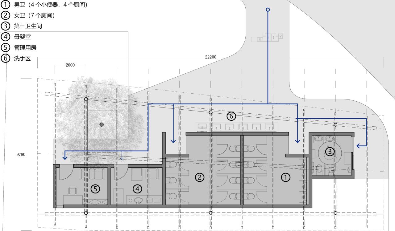 我们选择参加此次竞赛,一是因为公厕设计一直以来在城市空间设计中容易被忽略,但却是不可或缺的部分。二是很久没做过这种有趣的小公建了,着实有些手痒(笑)。