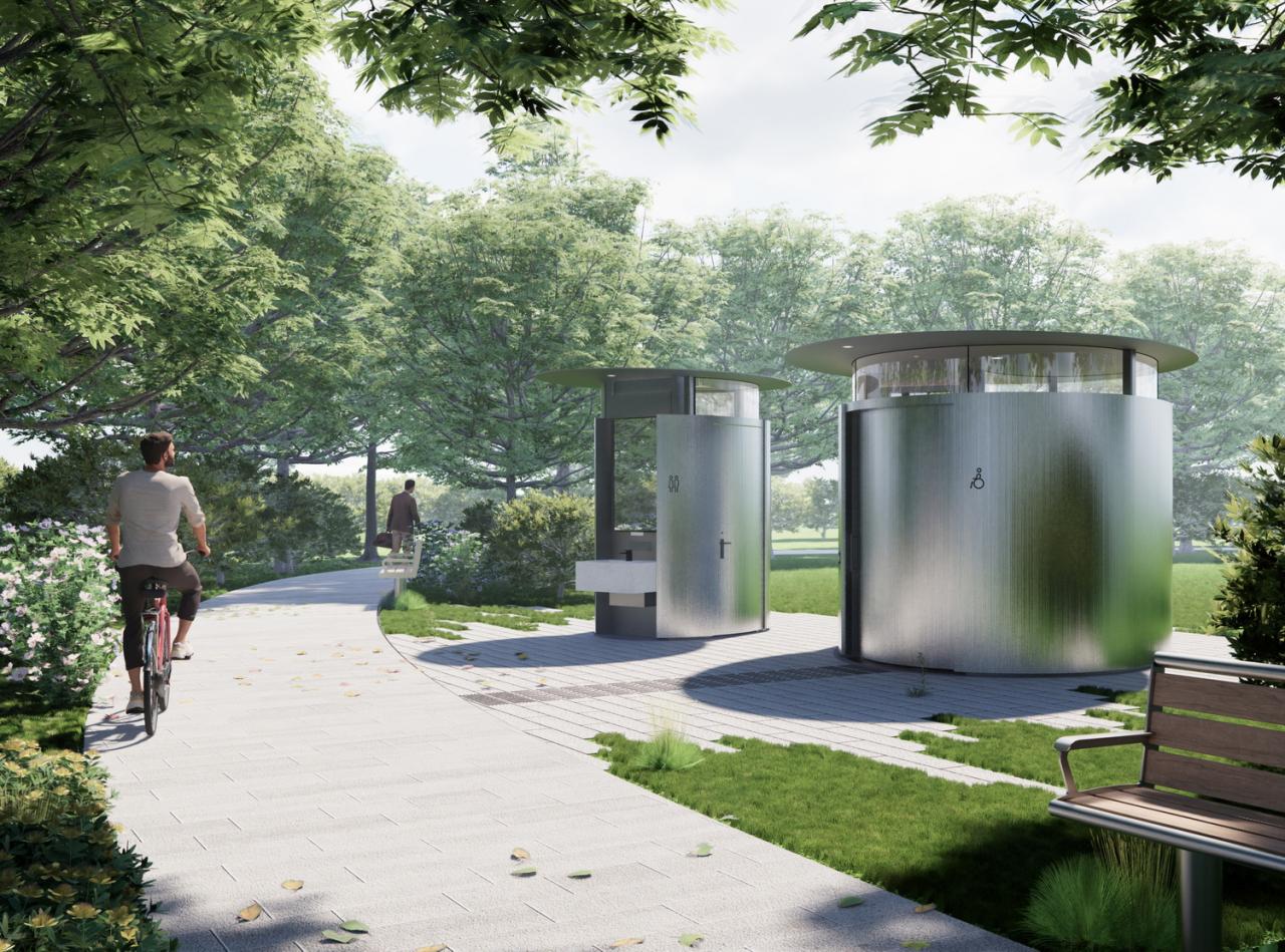 装配式公共厕所共设计了两种单体模块,分别是独立的卫生间和残疾人卫生间。场地共9处,按需放置安装即可,要求装配式公厕有一定的场地适配性。