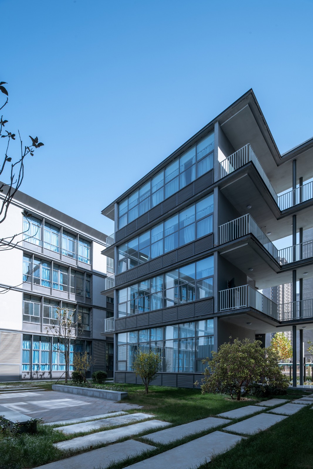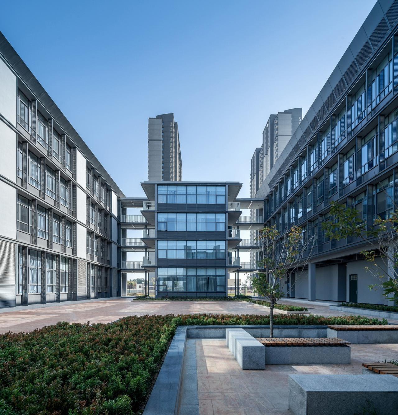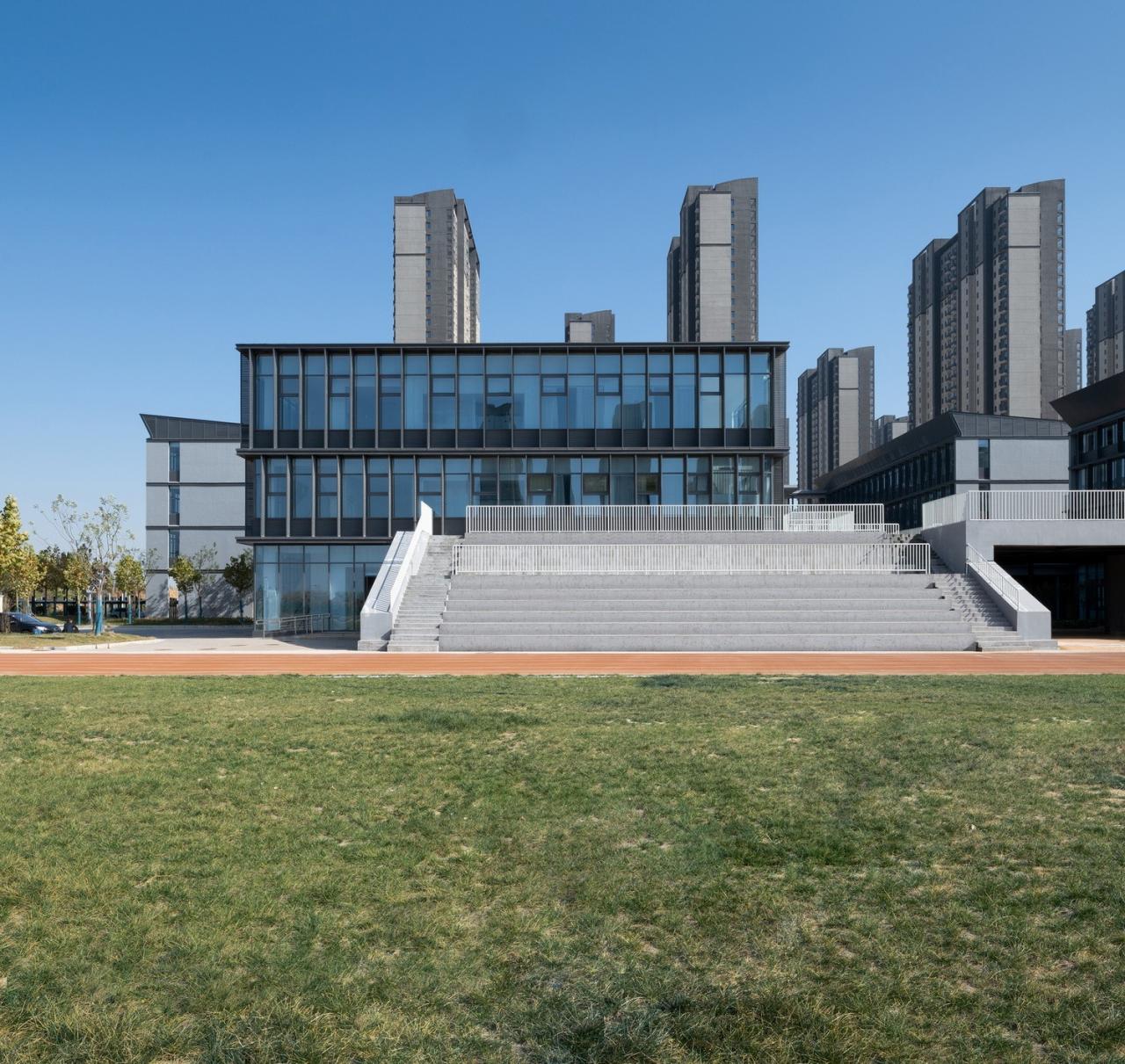 在四栋教学楼之间,参照郑州传统的“学堂书院”的空间布局,重塑清新淡雅的书香氛围。