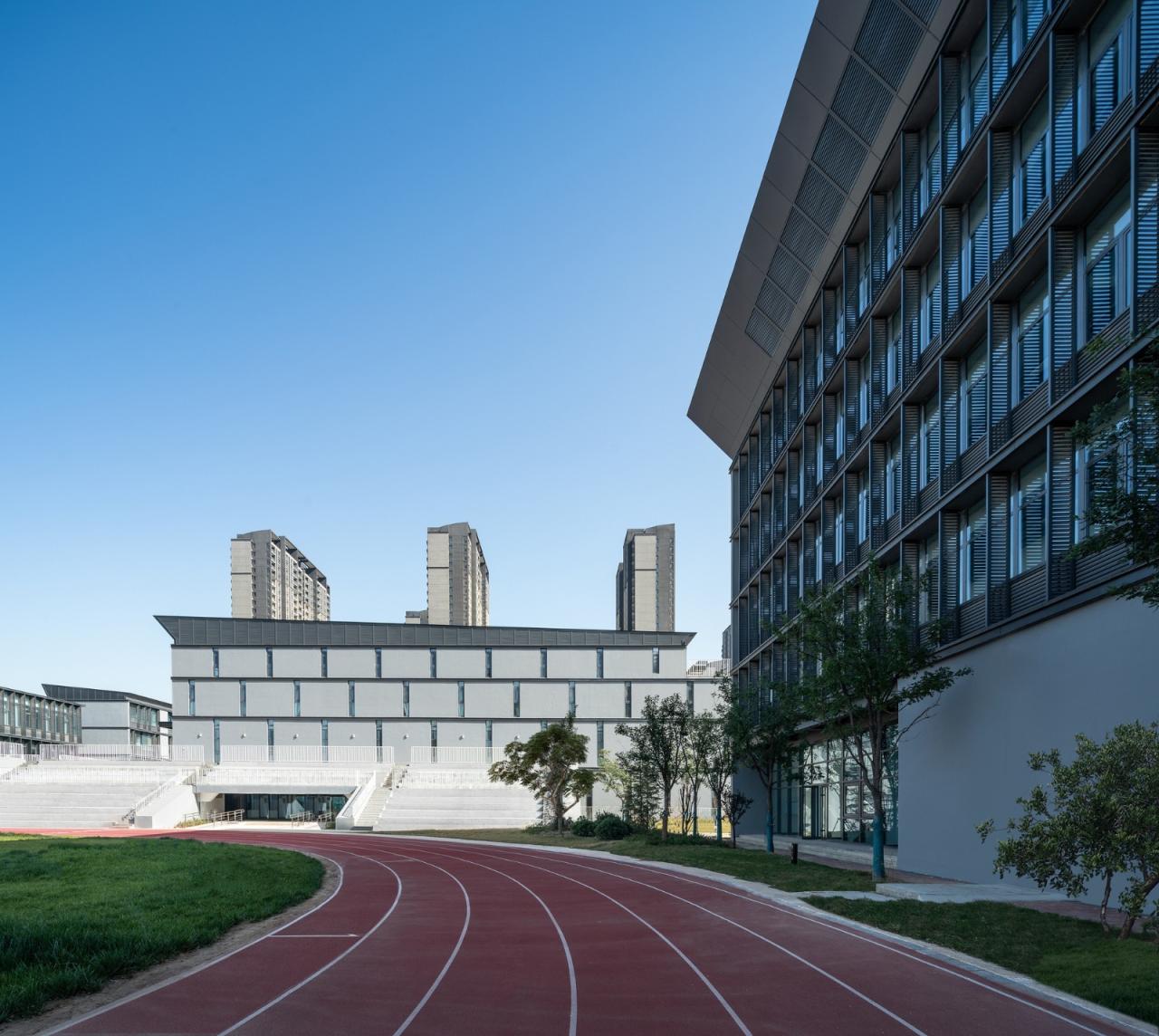 郑州市第130中学以“开放型空间”作为切入点,通过“组团院落”和 “二层活力平台”空间的打造来营造集约化校园;在遵循整体建筑风格的前提下,实现传统文化的当代表达;把细部设计作为空间设计的重要组成部分,高品质地呈现建筑的细部之美。