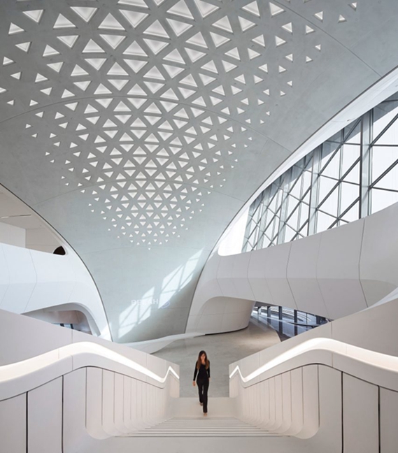 由已故建筑师扎哈-哈迪德(ZahaHadid)设计,人们期待已久的比耶总部采用了一系列“相互连接的沙丘”的形式,与萨贾亚沙漠(Al Sajaa)周围的环境相呼应。这座9000平方米的建筑是比耶集团的管理和行政中心。扎哈-哈迪德工作室称,它注重可持续性,以反映这个公司的工作。