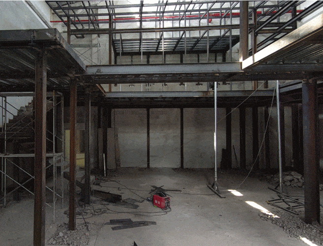 设计团队延续茶室“聚落”的空间主题,在蔬房中以构建体块空间,营造“社交感”,犹如都市中的“自然社区”。通过外立面的打开与钢结构围合的基本空间形态,塑造连续而层叠的双层空间秩序,并连接原始建筑框架,景观与室内交融呈现,让得以保留下来的历史肌理与现代崭新材料形成反差下的和谐美。