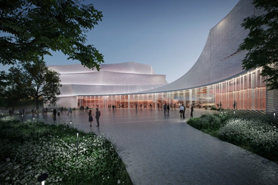 音乐厅将由四个弧形建筑组成,将有容纳1600个座位的表演厅,还有领奖台、演奏厅和创意中心。这座音乐厅被誉为巴尔干半岛第一座此类场所,将由建筑师阿曼达-列维特(Amanda Levete)领导的AL_A建筑工作室设计。