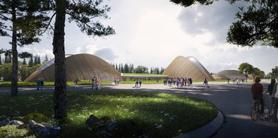马岩松工作室设计了这些建筑的木结构,以允许开放式无柱室内空间,容纳各种展览布局。自然光将通过屋顶天窗提供,这让人想起从上方张开的杏仁状眼睛。马岩松工作室由马艳松于2004年在北京创立。在中国其他地方,该工作室目前正在重庆开发一个以龙门起重机为模型的“未来派”邮轮码头,并在海岸上建造一座白云般的科学博物馆。它最近在中国东北山区建成了亚布力企业家大会中心,并在北京建成了一所带有红色屋顶操场的幼儿园。