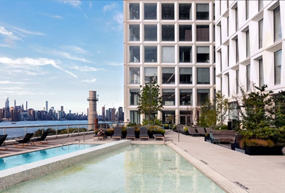 住宅楼共有332套公寓,其中66套为低收入租户提供。这些单元的安排,从工作室到一居室和两居室公寓不等。最小的住宅面积为900平方英尺(84平方米),最大的住宅面积为1240平方英尺(115平方米)。室内元素包括落地窗、中央空调、太阳和灯光遮光罩,以及博世洗衣机和烘干机。开放式厨房配有不锈钢设备和定制的意大利橱柜。裙楼包含零售空间和餐厅,以及健身房和其他租户设施。屋顶有花园和游泳池,其景观由纽约James Corner Field Operations公司设计。