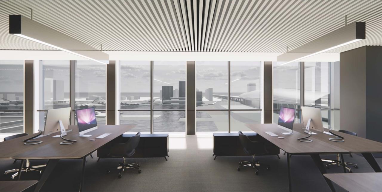 如何在高密度的空间创造出宜人的办公环境,最大化利用景观资源,如何减少高铁对项目的噪音影响,如何将“矮胖”的办公楼打造成有记忆点的标杆办公楼,都是本项目亟需回答的问题。