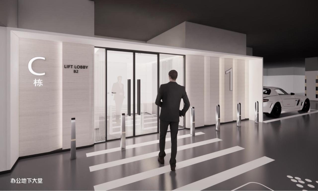 日字形的主车道使空间格局清晰,并且在每栋楼地下室设置门厅,为客户提供宾至如归的感受。