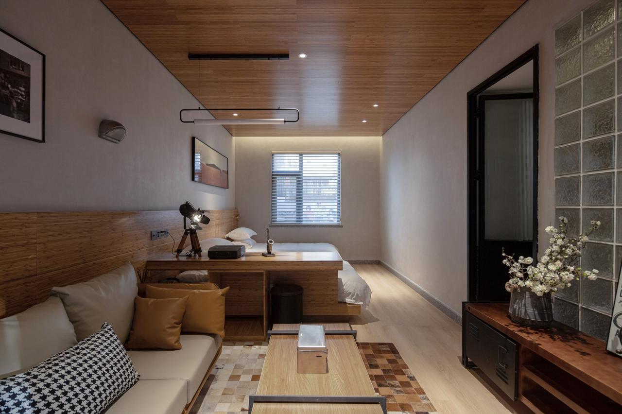 因此建筑师将更多的设计重心都放置在内部环境的改善与提升,而建筑外立面则只是作翻新、修复及加固处理,通过克制的设计手法去融入原建筑。尽可能的在维持它原有的建筑形态与风貌的同时,将室内使用机能全部进行重置与更新,以便满足民宿运营需求及符合当代人们生活与使用习惯。而为了让空间更具时代记忆感,整体室内空间上也植入了具有既定时代的工矿元素及材质。