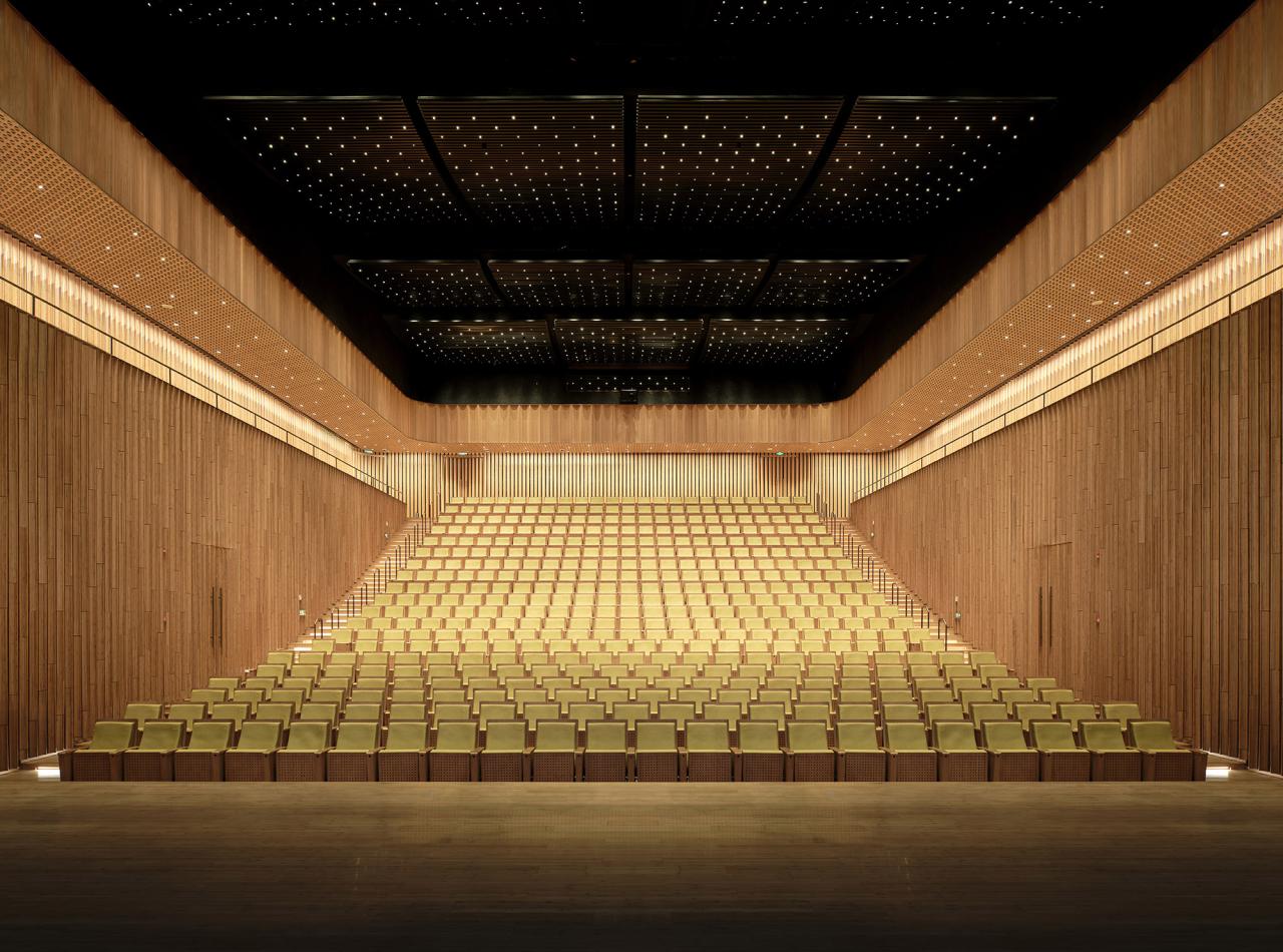 本设计旨在创造一个同时具备地标性和开放性的公共活动场所,同时延续场所的自然生态和人文特色。建筑师尝试探索一种新的观演空间类型,打造一个“自然中的剧院”,使“显著的外观”与“自然的体验”能够在这座建筑中平衡地展现。
