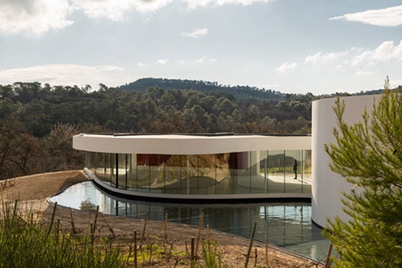 据哈托-拉科斯特(Chateau La Coste).介绍:“展馆采用自然的弧形建筑,体现了尼迈耶的独特风格,与周围的葡萄藤和起伏的普罗旺尔山完美融合。”他说:“引人注目的玻璃立面给人的印象是葡萄园在整个建筑中展开,而入口的浅水池完美地捕捉到了光线和反射的相互作用。”