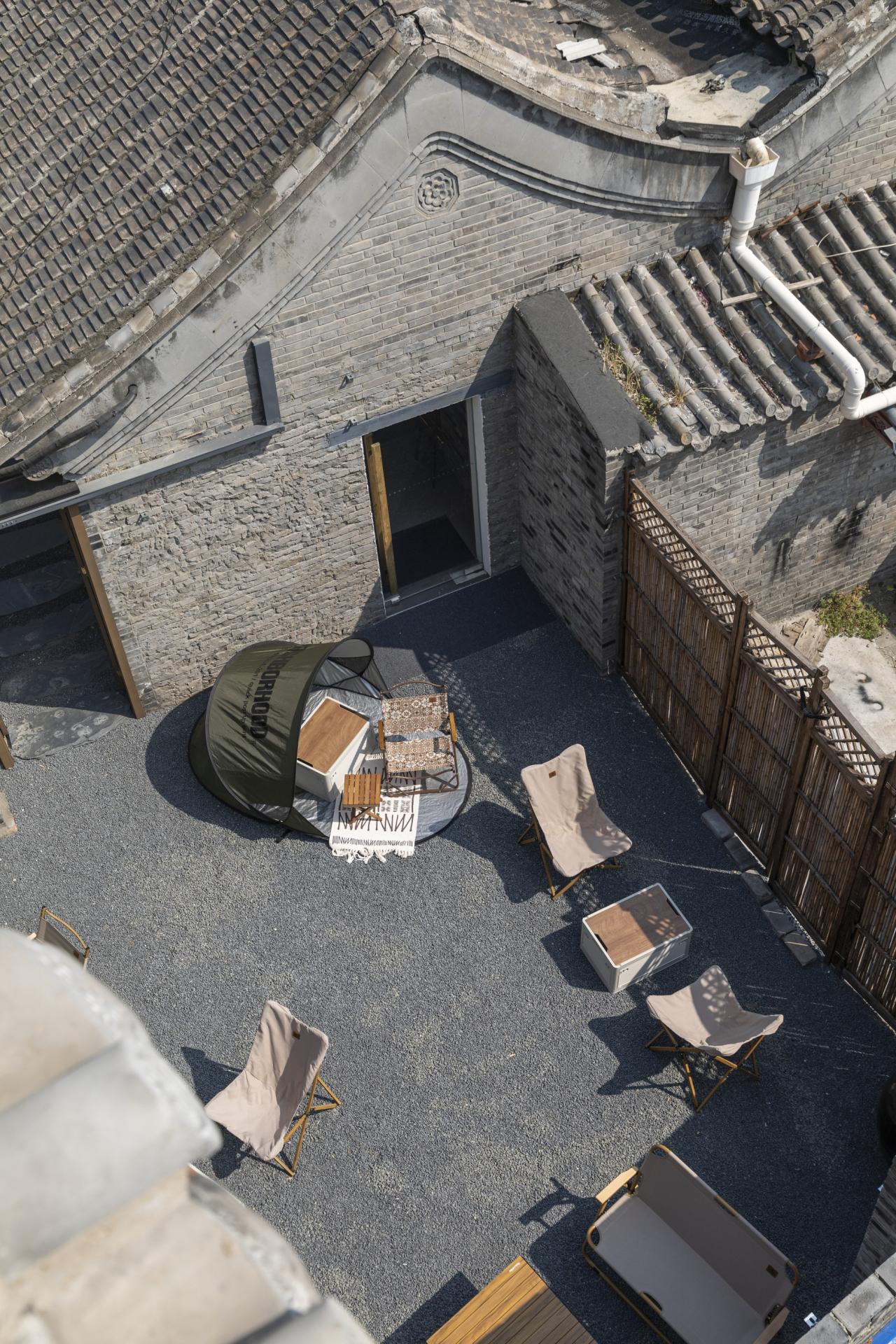 原生场地是一个面朝南新华街的合院,左邻右舍都是此地久居的老住民。从狭窄的入口通行,空间关系是北京传统四合院的简化版,我们对院子做了重新解构——尽管原有的空间属性是全封闭的,我们希望仍然保持疏密有序的感觉,因此将封闭的院子做得尽量通透、明亮。我们注重进入内庭院后的感受,即关门伊始,就进入自己的世界,来访者所见皆是自己视野内的建筑,这是贯穿在设计过程中逻辑,既需要有一定的透气感,也要保证私密性。