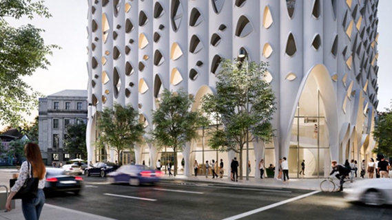 甘工作室创始人珍妮-甘(Jeanne Gang)表示:“提高我们城市的弹性从未像现在这样紧迫,它包括减少碳排放以及加强社区纽带。”她补充道:“我们已将杨树酒店设计成丹佛市中心的一个新目的地,将这些环境和社会雄心结合在一起。”该建筑本身将反映其三角形场地,入口位于建筑最薄的部分。结构的其余部分将向结构的背面加宽。白色立面结构包裹着酒店,并延伸至街道水平的拱形点。拱门两腿之间将安装玻璃,覆盖大厅和地面设施。