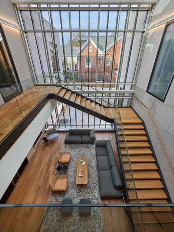 当游客走近华盛顿特区第34街(也被称为大使馆街)的大楼时,一个由高高的玻璃幕墙构成的镀铜楼体让人可以一瞥重新设计的大厅。此前,大堂被提升到街道以上,无法进入。